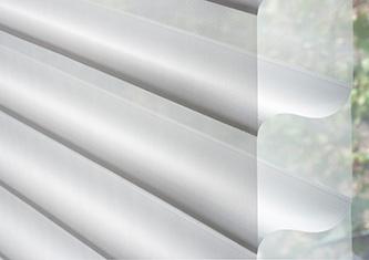 Suas lâminas de tecido flutuam entre telas transparentes que permitem a completa visibilidade exterior. Basta inclinar as lâminas da cortina Silhouette® para alcançar o nível desejado de luz e privacidade.